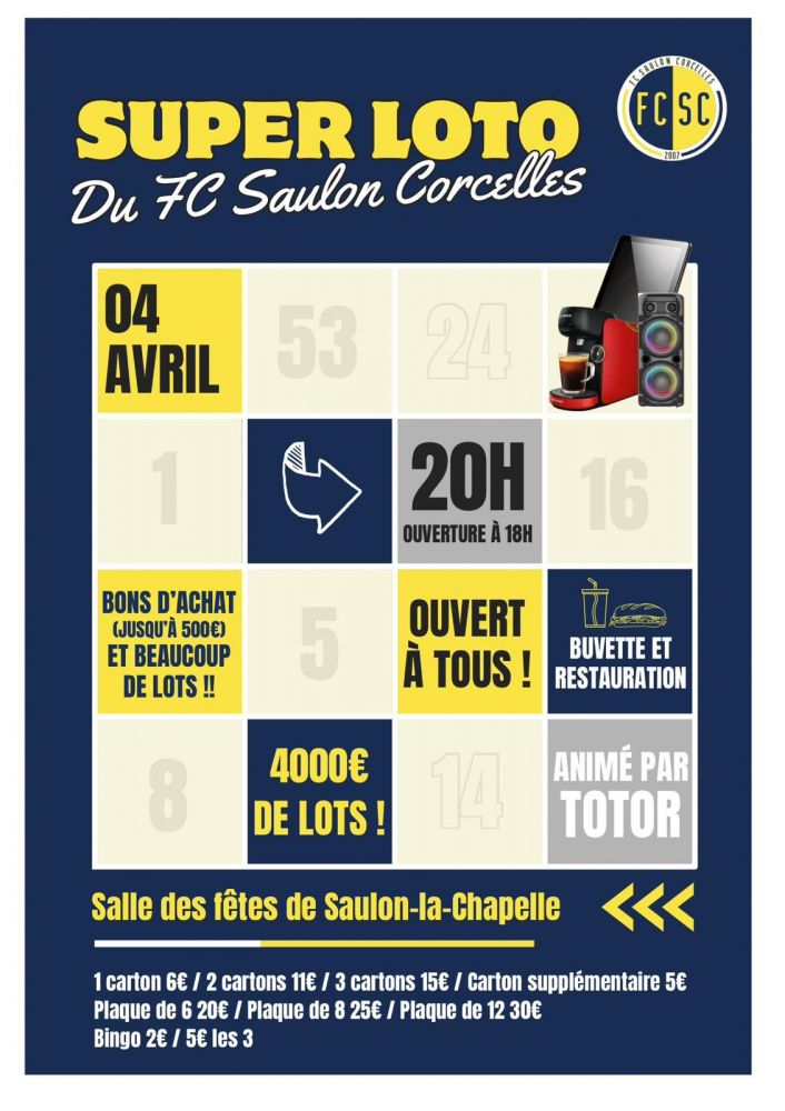 Super loto du fc saulon corcelles à Saulon-la-Chapelle